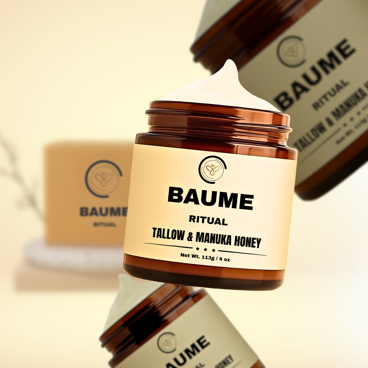 Answer 2: The balm is crafted from all-natural ingredients: grass-fed beef tallow mimics human skin oils for effective hydration, Manuka honey provides healing properties, cold-pressed olive oil nourishes, Vitamin E promotes skin health, and Marigold Flower Extract offers gentle care. Together, they create a powerful moisturizer that hydrates without harmful additives.